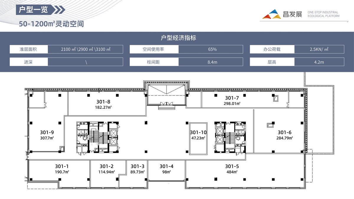 昌發展·科教中心,由頭部企業總部、新零售商業、新場景商務 3大空間產品組成;首層層高4.5m,標準層層高4.2m;一層為行政服務中心及配套商業,其余為商務辦公業態;車位數量共有300左右。